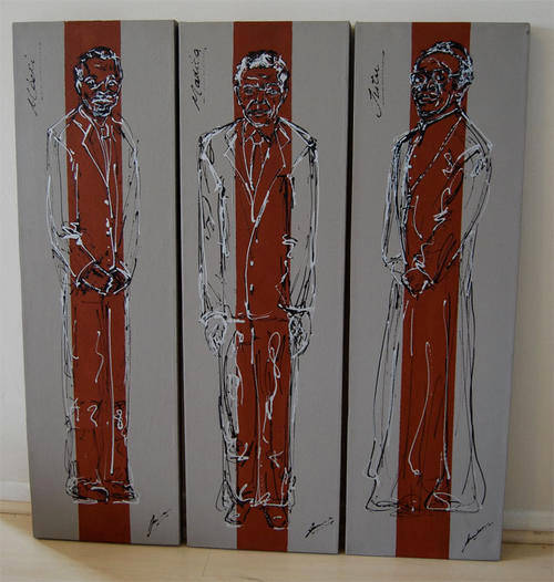 DESCRIPTION: CONTEMPORARY BACKROUND WITH LINE DRAWING FOR MODERN OFFICE OR HOME DEPICTING NELSON MANDELA, ARCHBISHOP TUTU AND THABO MBEKI. 3 X PANELS(30 CM X 110CM) ACRYLIC ON CANVAS by Juanique Pretorius FEEDBACK: I TYPICALLY WAIT UNTIL ITEM IS RECEIVED BY THE WINNING BIDDER PRIOR TO POSTING FEEDBACK. THIS ALLOWS BOTH PARTIES TIME TO RESOLVE ANY ISSUES THAT MAY ARISE WITH ANY GIVEN TRANSACTION. |