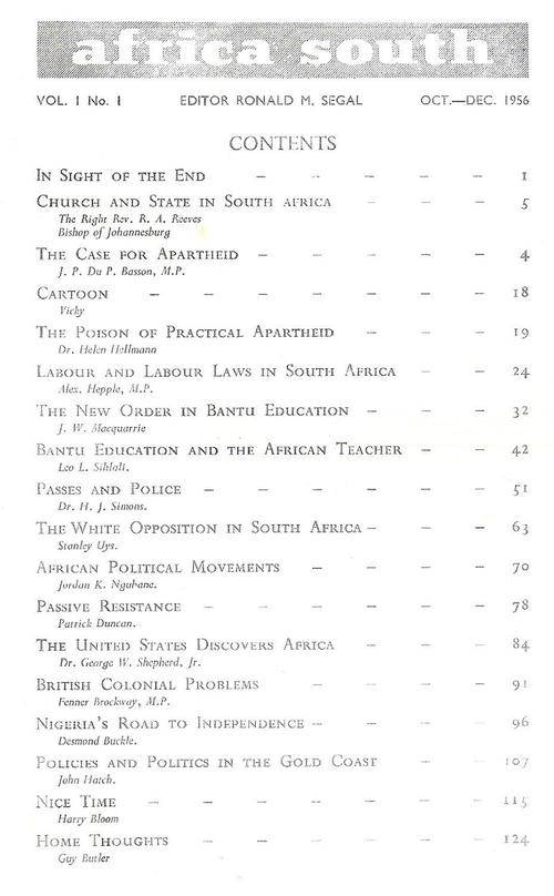 Soft cover editions published by Africa South Publications 1956 to 1959