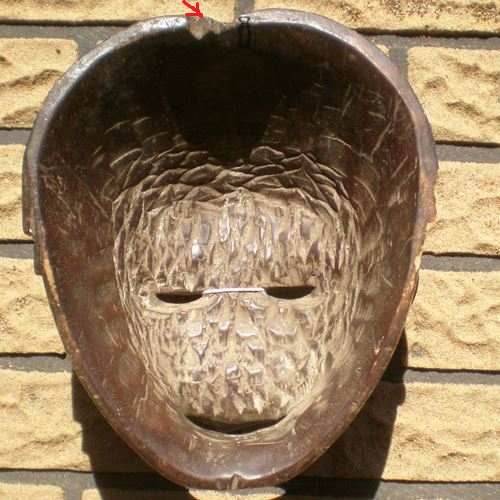 | DESCRIPTION | A vintage African art mask. Nigeria (Yoruba tribe). About 50 years old. Extensively hand carved from 1 piece of wood. Oval in shape. stained in soot and kaolin and showing nice age patination. Width: 25 cm. Height: 30 cm. Depth: 16 cm. |