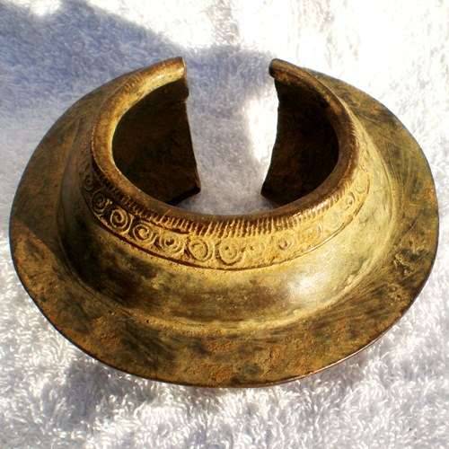| DESCRIPTION | A large African currency copper anklet dating from the 19th Century Used by the Akan tribe from the Gold Coast (now Ghana) for transactions such as buying livestock or for matrimonial transactions as well as for a display of wealth. It weighs 435 g and has a diameter of 12,5 cm at the widest point and the thickness of the anklet is about 6 cm. The beautiful antique anklet on auction here is shown in the image above and further images to illustrate it more closely appear below. Have a good look at them and, if there is anything you are unsure about, please ask a question. |