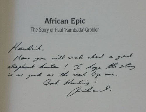 Item Description: Rowland Ward Publications, Johannesburg, 2005. Grey Boards. Book Condition: Near Fine. Dust Jacket Condition: Very good +. First Edition. xii + 268 pp. Profusely illustrated in colour. Maps to end-papers. Lamination of the dust-jacket slightly rubbed. Light creasing to the edges of the dust-jacket.Small closed tear, 2 centimetres in top edge of the dust-jacket. Inscribed by the author on the half-title page. The following is taken from the publishers website : "Spanning an extraordinary man’s life which began in the days of the ox wagon era, reveled in the excitement of pioneering in colonial Africa with unlimited big game hunting, and continued into the modern times of turbulent African independence, safari hunting and endless adventure. Paul Grobler’s day has gone, never to be repeated. Size: Quarto. INSCRIBED BY AUTHOR. Hard Cover. Bookseller Inventory # 05575