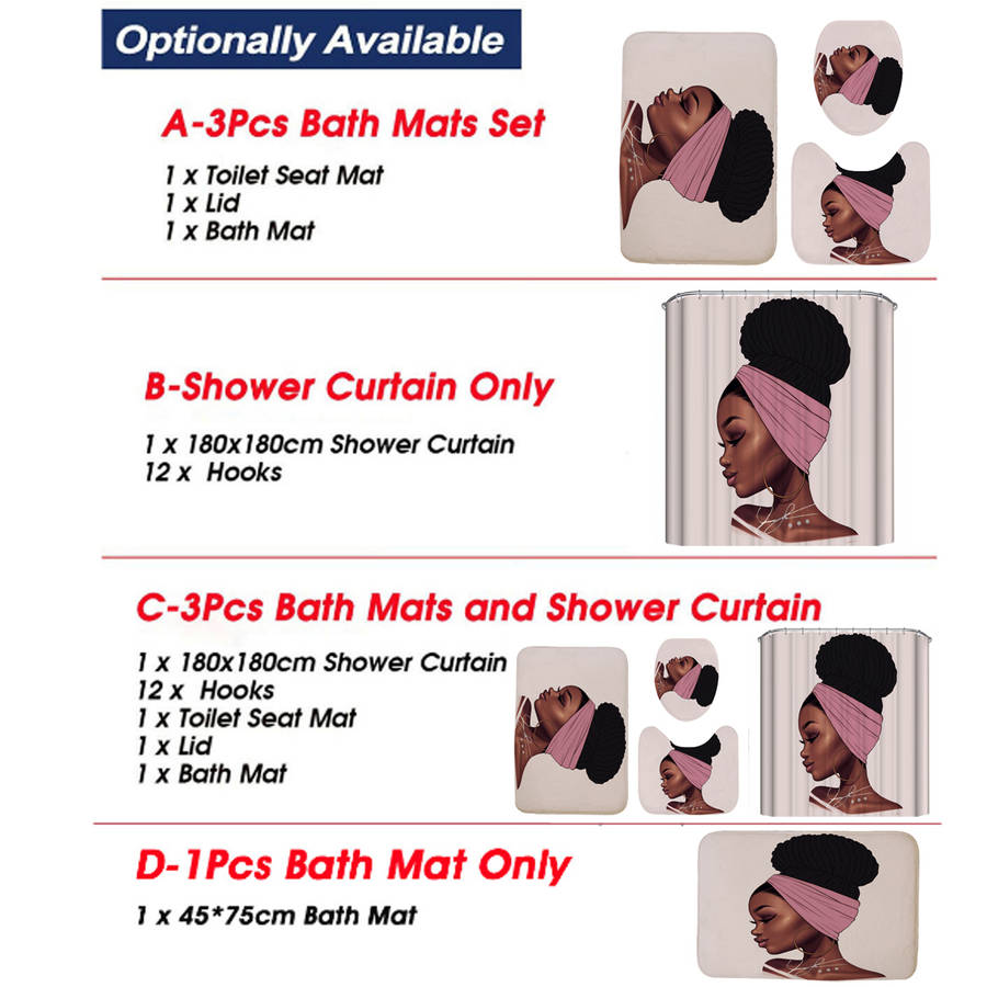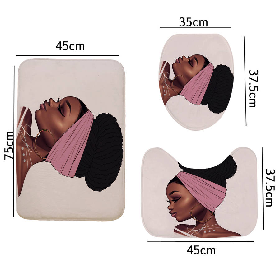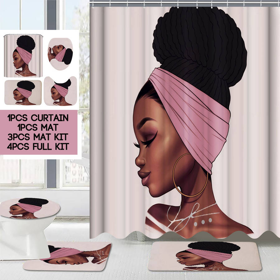 African Girl Waterproof Shower Curtain Non-slip Mats Bath Carpets Toilet Seat Cover Floor Mat