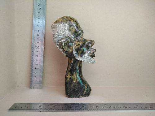 This beautiful natural stone African hand carved stone tribal bust is of an old tribal man with a balding grey hairline on his head and a grey beard.