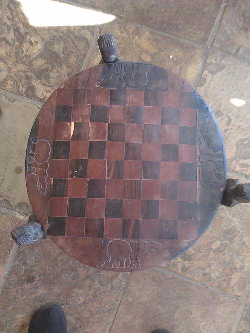 African Handcarved Chess or African Game Table with Collapsible feet and reversable carved top