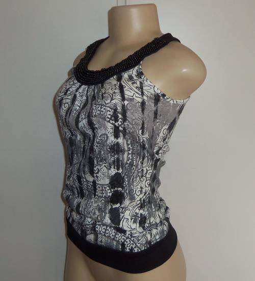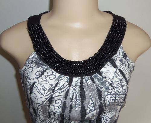 Material: 58% Cotton, 41% Polyester and 1% Spandex (with wooden beads around the neckline)