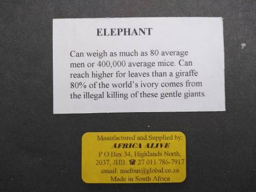 Beautiful Art Deco Style. Wooden frame with African Elephants and some facts about elephants on the back.