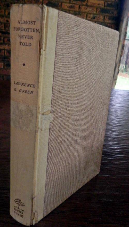 Almost Forgotten Never Told.By Lawrence G Greene. Howard Timmins Cape Town. Stated First Edition 1965. Has partly visible library stamp on fly page and a hand written catalogue number inside board. Has hand written library borrowing dates on fly page. Has wear on cover where old cellotape was.lease see photos for more exact description.