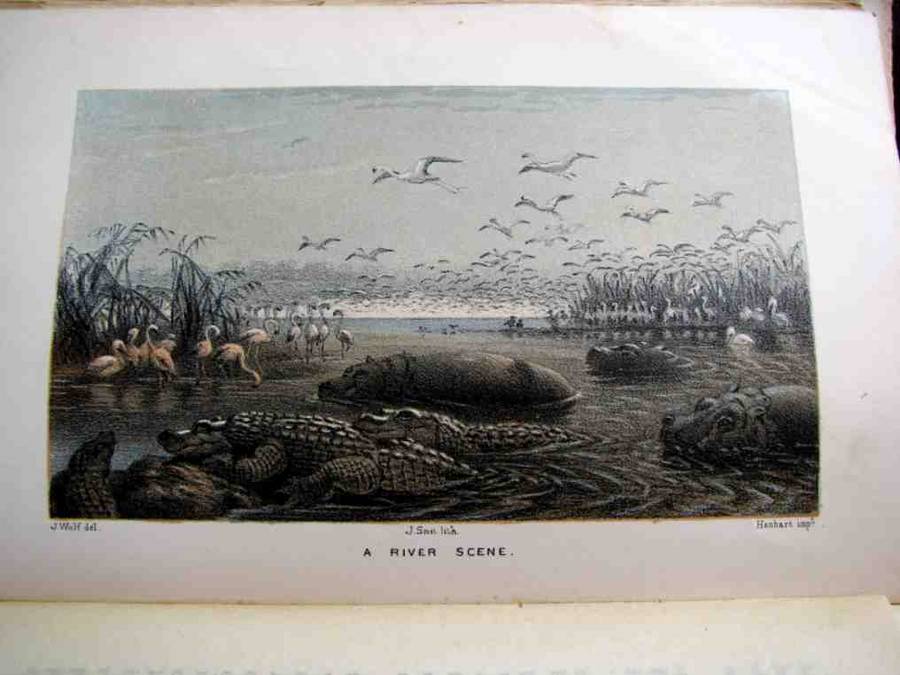 African Hunting and Adventure from Natal to the Zambesi including Lake Ngami, the Kalahari Desert, etc. from 1852 to 1860. Illustrations by James Wolf and J. B. Zwecker. "Mr. Baldwin's experiences are written in a simple and unostentatious manner, but he went through more adventures than almost all of the great South African travellers and hunters." Publishers = Richard Bentley & Son, London, 1894. Gold Male LION'S head on front cover.
