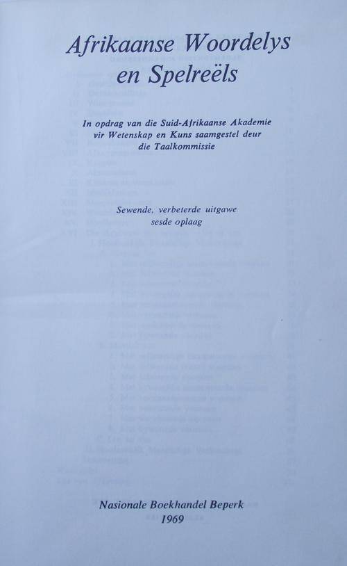 AFRIKAANSE WOORDELYS EN SPELREELS saamgestel deur die Taalkommissie