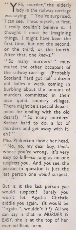 Agatha Christie - Murder Is Easy, published in 1959, 254 pages, hardcover with dustjacket & plastic wrap, scuffing/age spots - also note ex library book so has all the stickers/stamps/cancellations etc however all pages are intact & are quite readable.