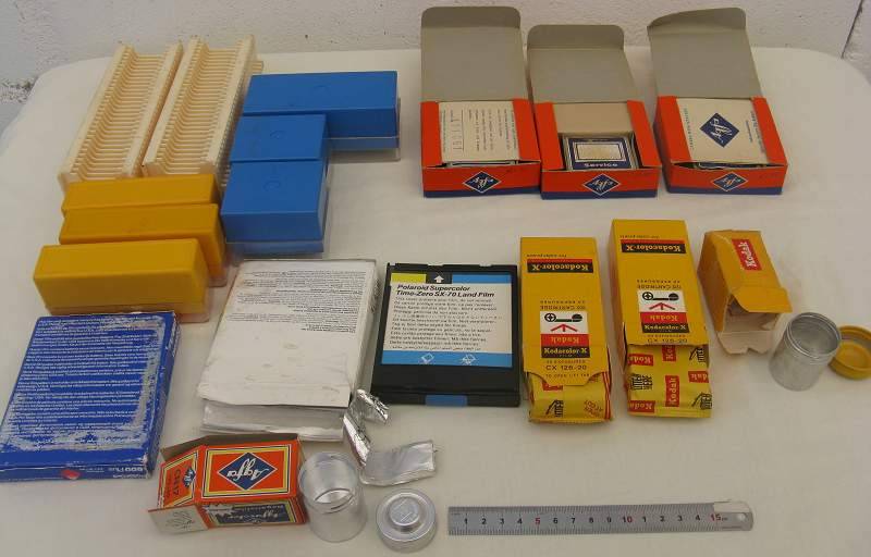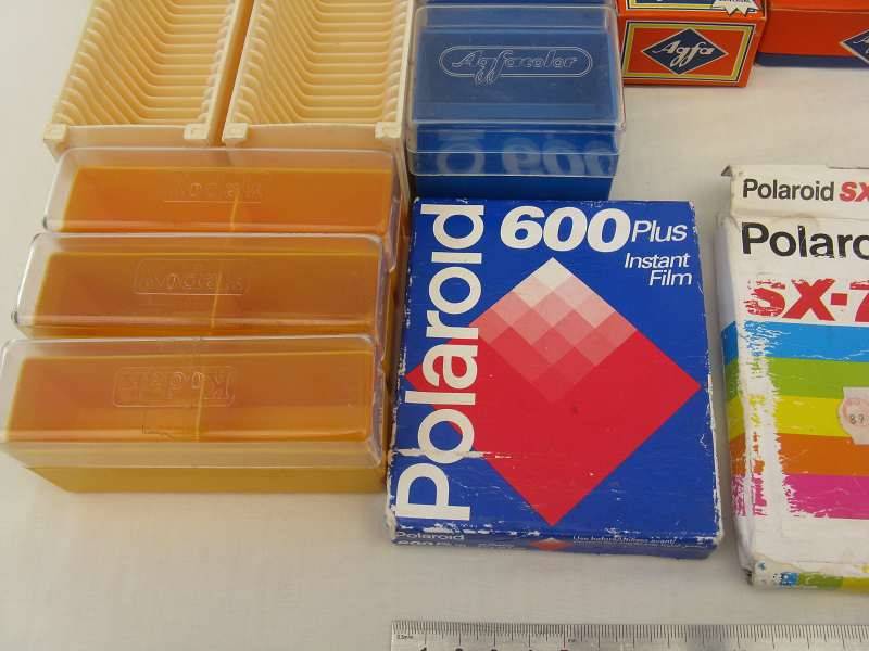 AGFA GLASS SLIDES, KODAC/POLAROID FILM, SLIDES TRAY/CONTAINERS & OTHER COMBO. BID FOR THE LOT.