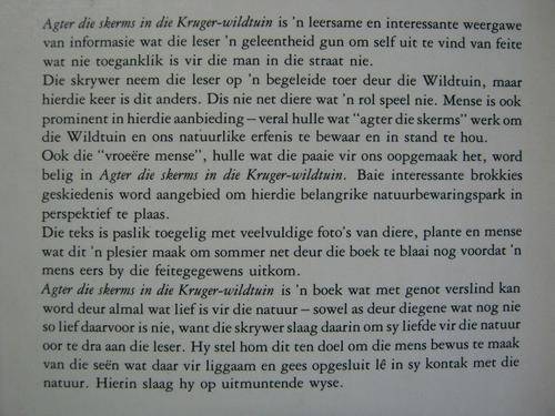 Agter die Skerms in die Kruger-wildtuin. Piet Meiring