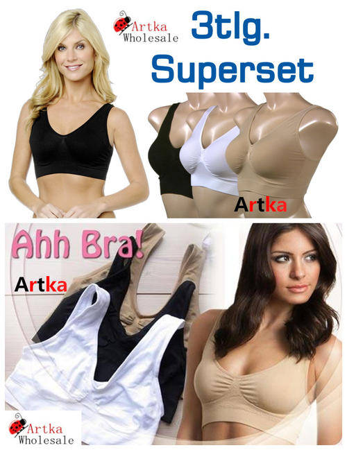 No more straps or hooks. Enjoy comfort and an incredible look. The Ahh Bra instantly transforms your appearance without bra lines. No wires, clips, hooks or straps to adjust. Seamless microfiber is easy to pullover and features soft, full coverage cups with V neck and wide shoulder straps. black & beige available.