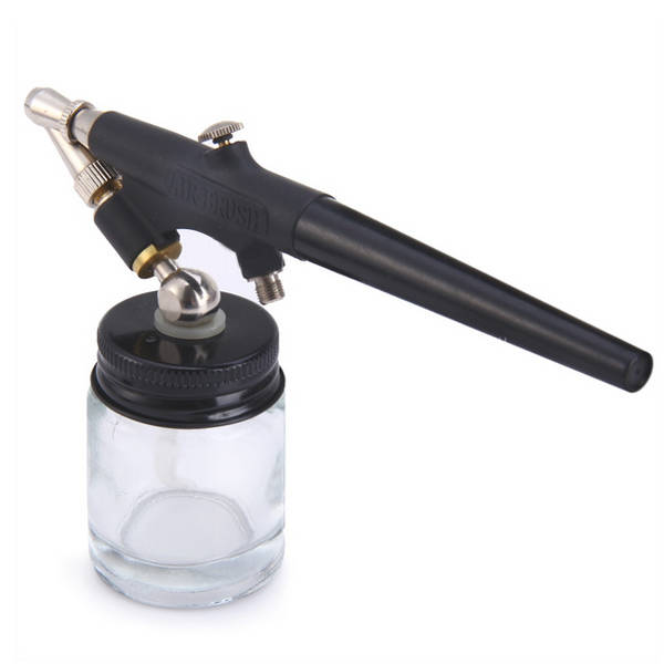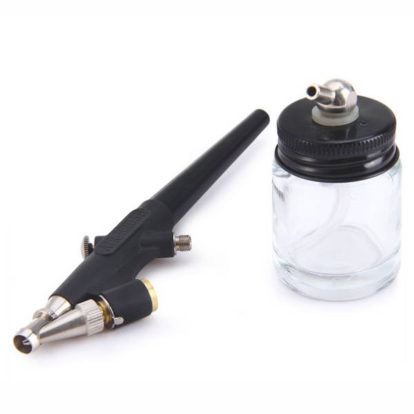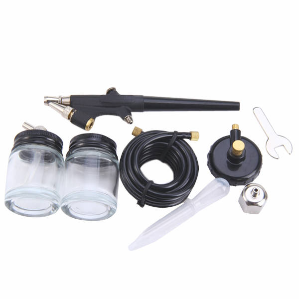 Air Brush Airbrush Spray Gun Sprayer Painting Tool Kit Features: Handheld airbrush spray gun painting tool Application: ad photography, hanging calendar, painting, architecture drawing, compositive painting, etc. Caliber of nozzle: 0.8 mm Length of spray pen: 130 mm Working air pressure: 15 - 50 PSI On / off mode: Push button control Capacity of glass jar: 2 X 20 ml Length of PU tube: 5 feet Specification: Material: Plastic Color: Black Dimension: 13.5 x 2.7 x 1 cm / 5.31 x 1.06 x 0.39 inches Package Included: 1 x Airbrush 1 x PU Tube 2 x Glass Jar 1 x Bottle Cap 1 x Connector 1 x Wrench 1 x English Manual