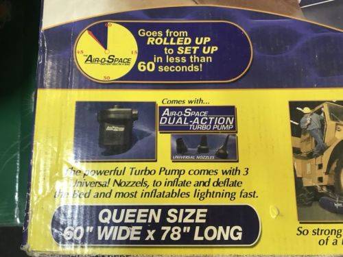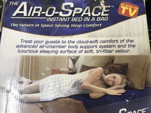 Brand new. Retails for R1,500. With plush flocking on the top, the Air-O-Space Instant Bed in a bag is great for outdoor use, camping or guests. It folds easily for compact storage, inflates and deflates in less than minutes!. Includes: 1 electric pump, 3-piece pump nozzle set, 2 pillows, Repair kit and 1 travel bag