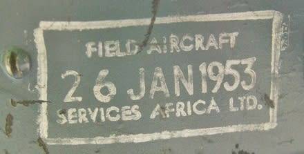 Also on Side Stamped Field Aircraft 26 Jan 1953 Services Africa Ltd