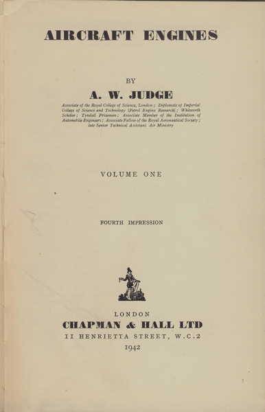 Aircraft Engines by A.W Judge - 1942 issue - Volume 1 and 2
