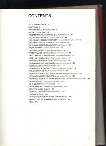 Aircraft of the South African Airforce, By Herman Potgieter & Willem Steenkamp< Published by C. Struik 1981, second edition, wear on the dust wrapper and shelf wear, name and dedication inscription from previous owner, lots of photos, 180 pages, good condition.