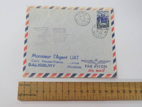 Airmail cover Paris,France to Salisbury, Rhodesia with French stamp cancelled 14-9-1960