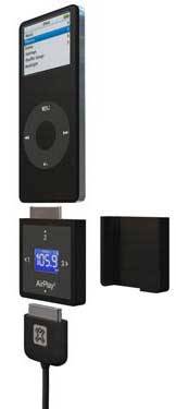 Upgrade to the wireless convenience of the AirPlay2 FM transmitter and never mess with the clutter of cords again. Simply plug the AirPlay2 into any dock-connector iPod (excluding the 3G model), tune to the same frequency as your FM radio, and push play. The iPod will then play your favorite tunes through any FM stereo--including home stereos, car stereos, and clock radios. The AirPlay2 isn't done yet, however, as it also offers a mono mode for better reception in crowded radio markets, a wide tuning range of 88.1 to 107.9 MHz, three programmable station presets that allow you to conveniently recall your clearest transmission frequencies, and a bright blue LCD display with easy-to-read white characters for effortless daytime and nighttime viewing.