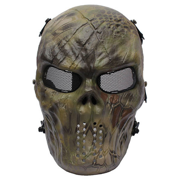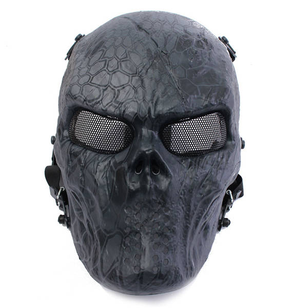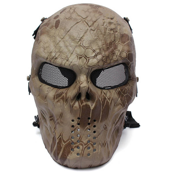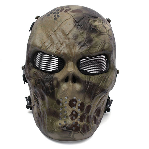 Airsoft Paintball Full Face Skull Mask Protection Outdoor Tactical Gear Description: Used for Shooting Skirmash, Skiing, Riding,Cosplay, Hunting & Military Purpose Use Outdoor Sport Adjustable straps design, easy to wear Eyes shield, mouth and nose on the mask is fully breathable, making your face comfortable. Full face protection Specification: Materials: Fabric Plastic and Wire Mesh Size:286mm * 177mm (11.3inch * 7 inch) Style: #1: wasteland #2: Police #3: Jungle #4: Desert Package Included: 1 X Mask