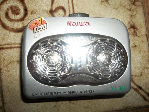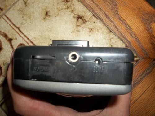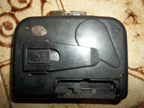 Here we have an Aiwa mini cassette player with a built-in speaker. It has been used a number of times and is still in very good condition. This cassette player only has the fast forward and play function, as well as the stop function. It also has a built-in auto stop feature which works on both the play and fast forward functions. This cassette player can be powered by two AA batteries or by using a power adapter which provides 4.5 volts of DC power. Please note that the battery cover is missing, and one of the wires on the built-in speaker has come loose, but it can be soldered back. This machine also has an earphone jack.