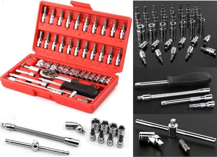 Aiyi 46 Piece Multi-Purpose 1/4 Inch Chrome Vanadium Socket Set with Storage Case , Retail Packaging, 3 Months Warranty