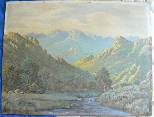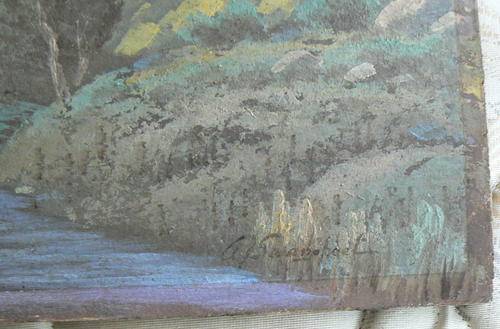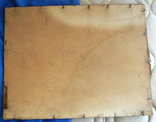 Painting faded origional colour where frame were. Back of board show some mold signs, not showing on front.