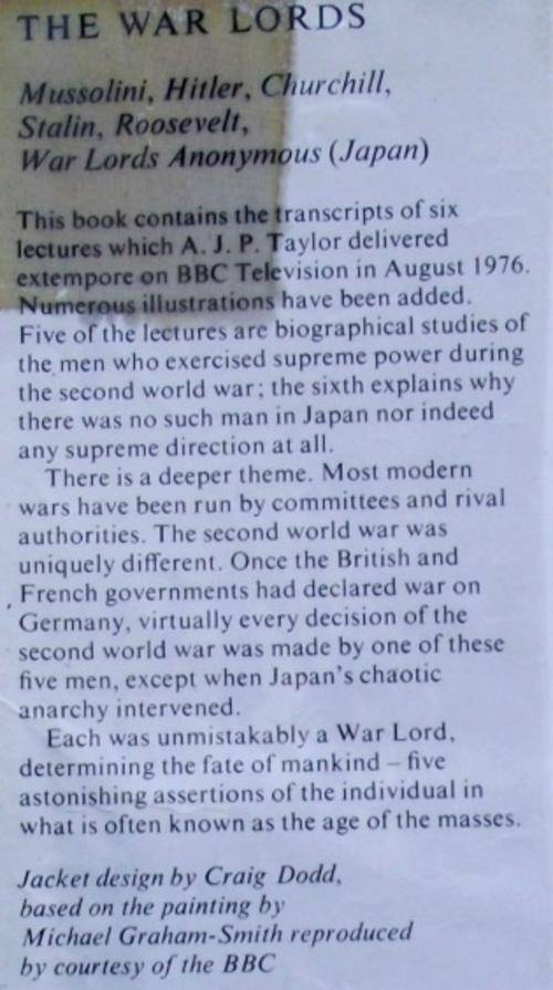 AJP Taylor: THE WAR LORDS: Mussolini, Hitler, Churchill, Stalin, Roosevelt, War Lords Anonymous