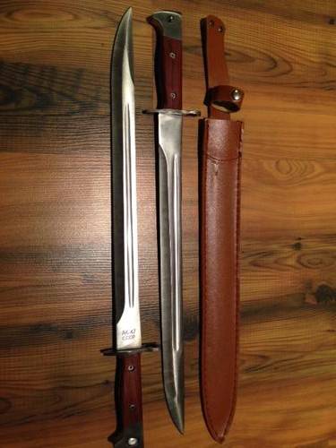 • The spine and edge curve symmetrically to the blade tip giving this bayonet a extra strong point with a long slicing belly. Ideal for thrusting and cutting.