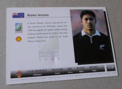 ALAMA LEREMIA - NEW ZEALAND RUGBY - 1995 RUGBY WORLD CUP SPORTS DECK CARD NUMBER 150
