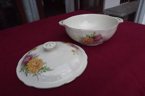Alfred Meakin Porcelain Serving Bowl with Lid - gilded edge - made in England - good condition