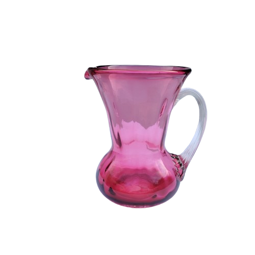 Hand Blown Cranberry Art Glass Pitcher with Ribbed Handle