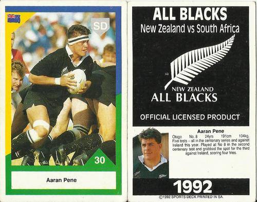 All Blacks NZ vs SA 1992 Rugby Trading Card Aaran Pene