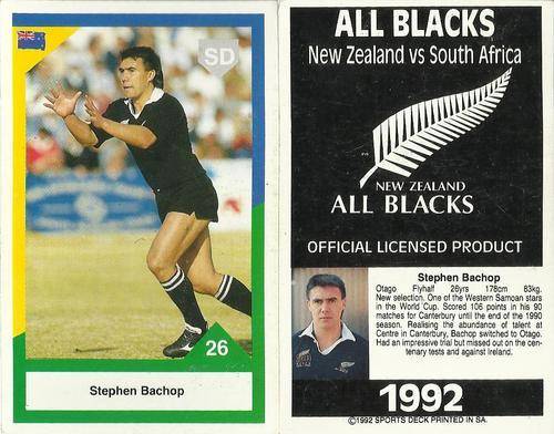 All Blacks NZ vs SA1992 Rugby Trading Card Stephen Bachop