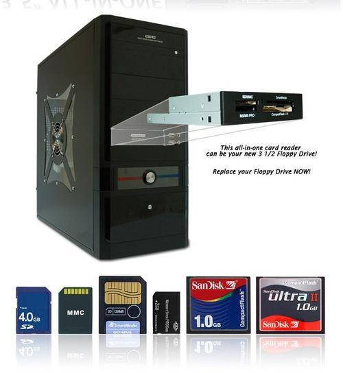 All in 1 : USB 2.0 Multi 3.5" Internal card reader/writer with embedded USB 2.0 Hub.