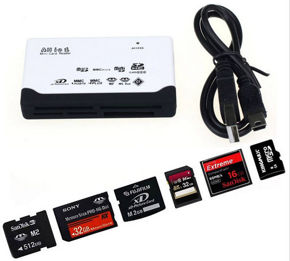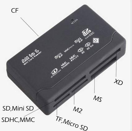All in One Card Reader : Compact Flash, Micro SD, TF, Pro Duo