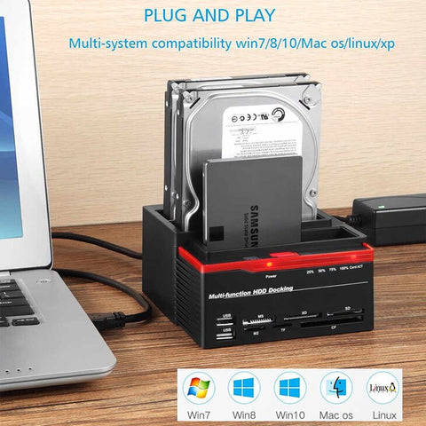 It is a multi-function hard disk holder with a SATA+IDE slot and built-in Card Reader/HUB. Fashionable appearance design, the appearance adopts black as the main body, with red lighting flashing device, two-color matching designs enjoy its beauty, beauty, and fashion. It is a simple and practical multi-function, hard disk holder. The beautiful appearance of the main body shows the easy-going aesthetics, and it is easy to move. It can access files at any time whether at home or at the company. This is for large quantities of data backup. System backups are all very good choices.