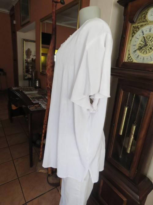 All in white!!Throw over top in creased polyester.Size 52/28 by 'DONNA CLAIRE'.As new.