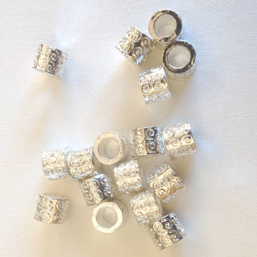 Alloy European Beads, Large Hole Beads, Tube, Silver, 10x8mm, hole 6mm