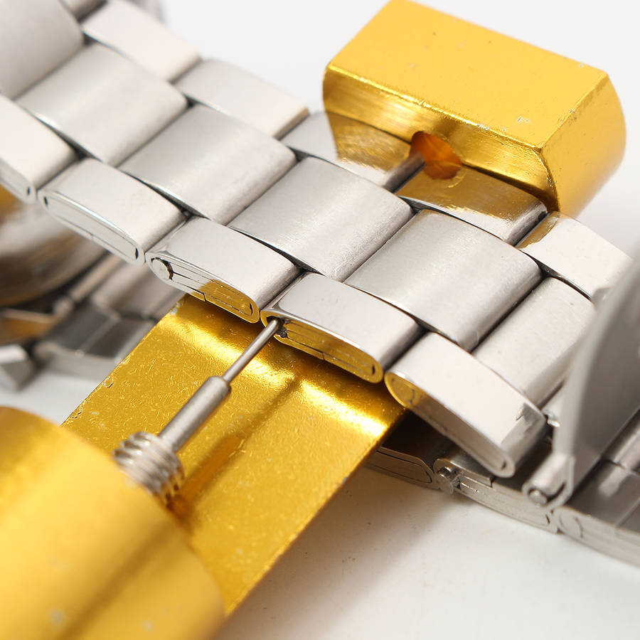 Features: 1.Easy to fit and removal of watch strap and bracelet pins and links. 2.Metal tool for working on watch bands, removing pins & removing or adding links on a bracelet or strap. 3.This handy tool will make shortening and adding links to your Watch band a snap.