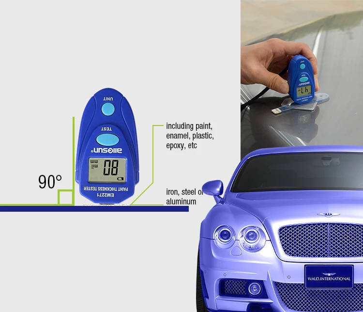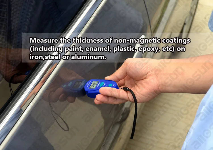 This paint thickness meter Smart Accident Finder is designed to not-destructively measure the thickness of non-magnetic coatings (including paint, enamel, plastic, epoxy, etc.) on iron, steel or aluminum.
