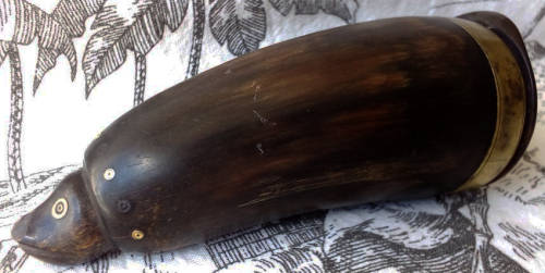 Antique Scottish horn snuff box / mull, brass fittings. Seal shape.