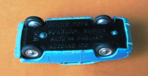 ALMOST MINT NO 166 SUNBEAM RAPIER IN TWO-TONE BLUE BY MECCANO DINKY, ENGLAND. SLIGHT SCUFFING TO HIGH EDGES ON ROOF, BUT IT IS 100% ORIGINAL. GREAT FIND!!