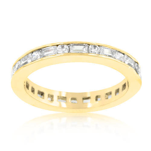 14k Gold Bonded Eternity Band with Alternating Baguette and Round Cut Cubic Zirconia Channel Set in Goldtonee