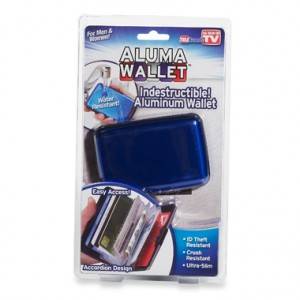 Made with super lightweight aluminum, this wallet is water and crush resistant and ID theft resistant so your valuables stay safe and secure. The multi-pocket accordion design gives you easy access to cards and cash and the alloy protects RFID chips in credit cards from ID theft. For men and women Indestructible Ultra-slim Brushed aluminum Easy open latch Fits any purse or pocket Made in China As Seen On TV ,Aluminum Wallet