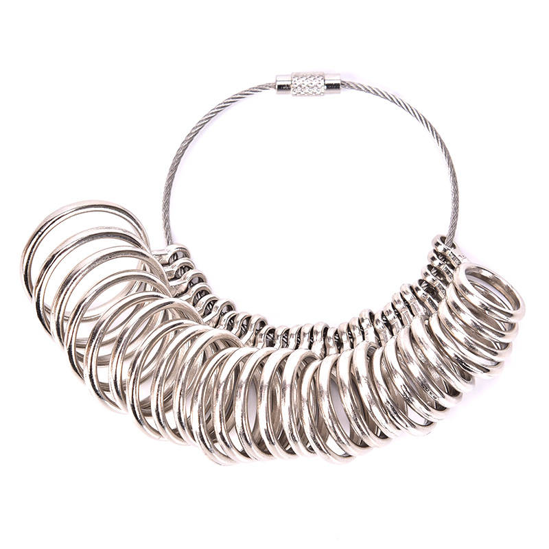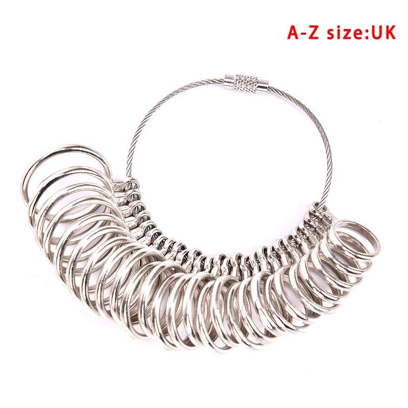 Features: 100%Brand new and high quality. Fashion and unique design. You can use it to make rings. Specifications: Material:Alloy Quantity:1PC Size: A:1-30 JP Size B:41-76 EU Size C:0-13 US Size D:1-30 KR Size E:A-Z UK Size F:0-15 US Size G:1-28 JP Size Package Included: 1 x Ring Sizer