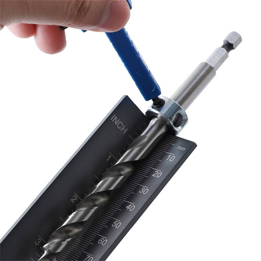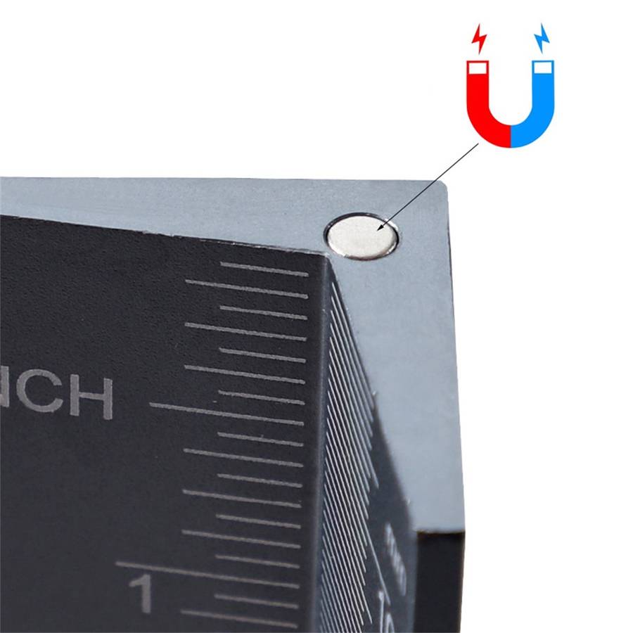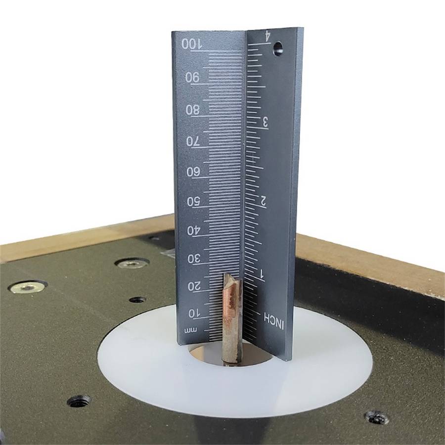 Aluminum alloy drill bit limit ring locator metric and inch double scale saw blade height measuring ruler with magnetic woodworking aids.