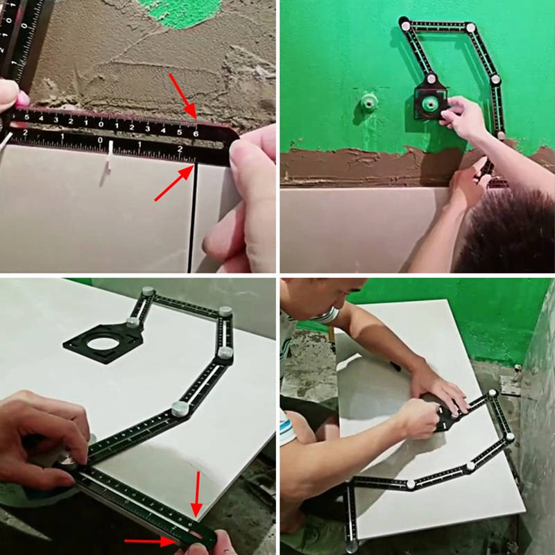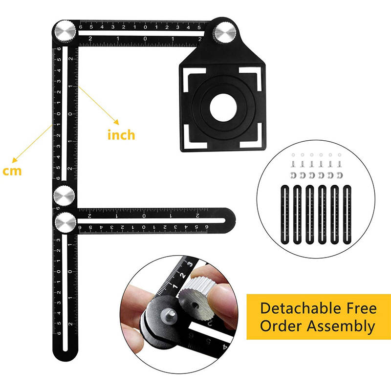 Description: Aluminum Alloy Multi Angle Tool Six Folding Universal Ruler Tile Hole Measure Tool