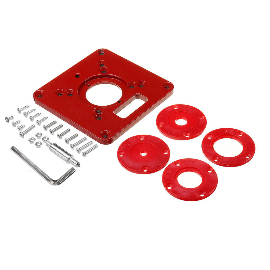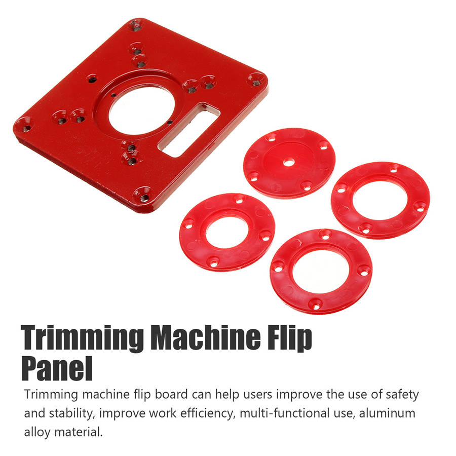 Specifications: Material: Aluminum Alloy Color: RedBlack Size: 120*120*8mm/4.72*4.72*0.31in Usage: Reversal function of trimming machine Packing Size: 140*130*30mm/5.5*5.1*1.2in Packing Weight: 315g/11.1oz Feature: Made by aluminium alloy,durable in use practical and rustproof. Convenient center-hole bushing used to alig n the router so it is centered in the bit hole. Make accurately drilling and mounting any router easy. It is easy to operate,save effort and expand the use of the trimming machine at the same time. Red color more bright and dinstinguished,red cover protect the flip board from scrach provide longer service time. Notice: 1.Please allow 1-2cm error due to manual measurement. 2.The colors may have different as the difference display,please understand. Package included: 1 x Flip Board 4 x Variable Diameter Coils 1 x Installation Accessories